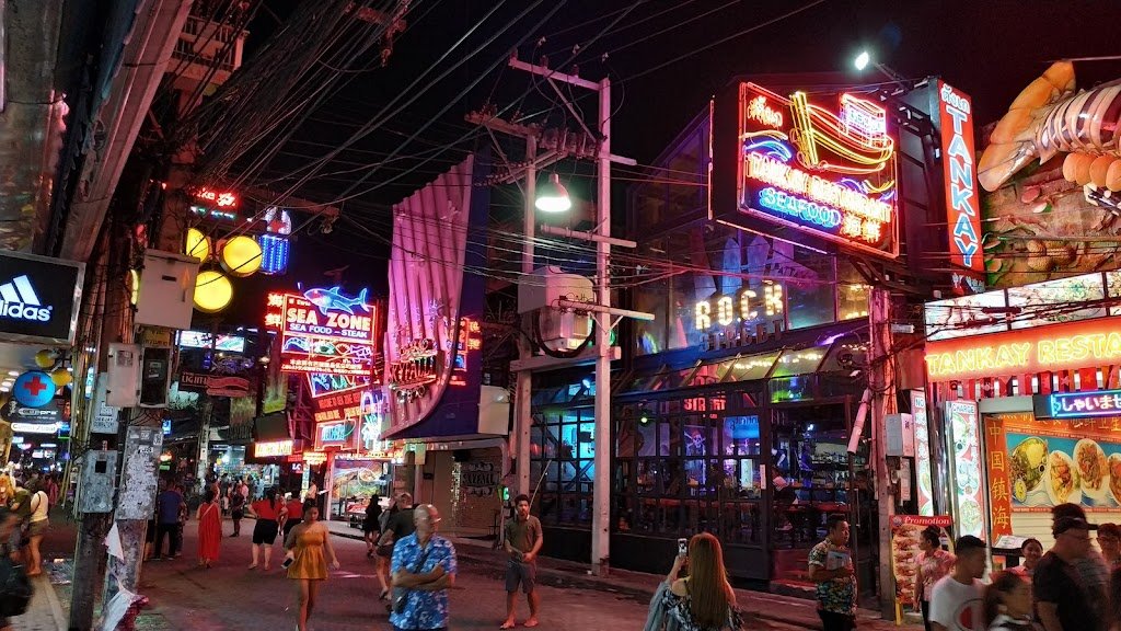 Pattaya Walking Street digambarkan sebagai pusat kehidupan malam yang ramai dan penuh warna, sempurna untuk hiburan, mengamati orang, dan menikmati suasana kehidupan malam Pattaya yang dinamis, menarik wisatawan solo, pasangan, dan teman-teman.