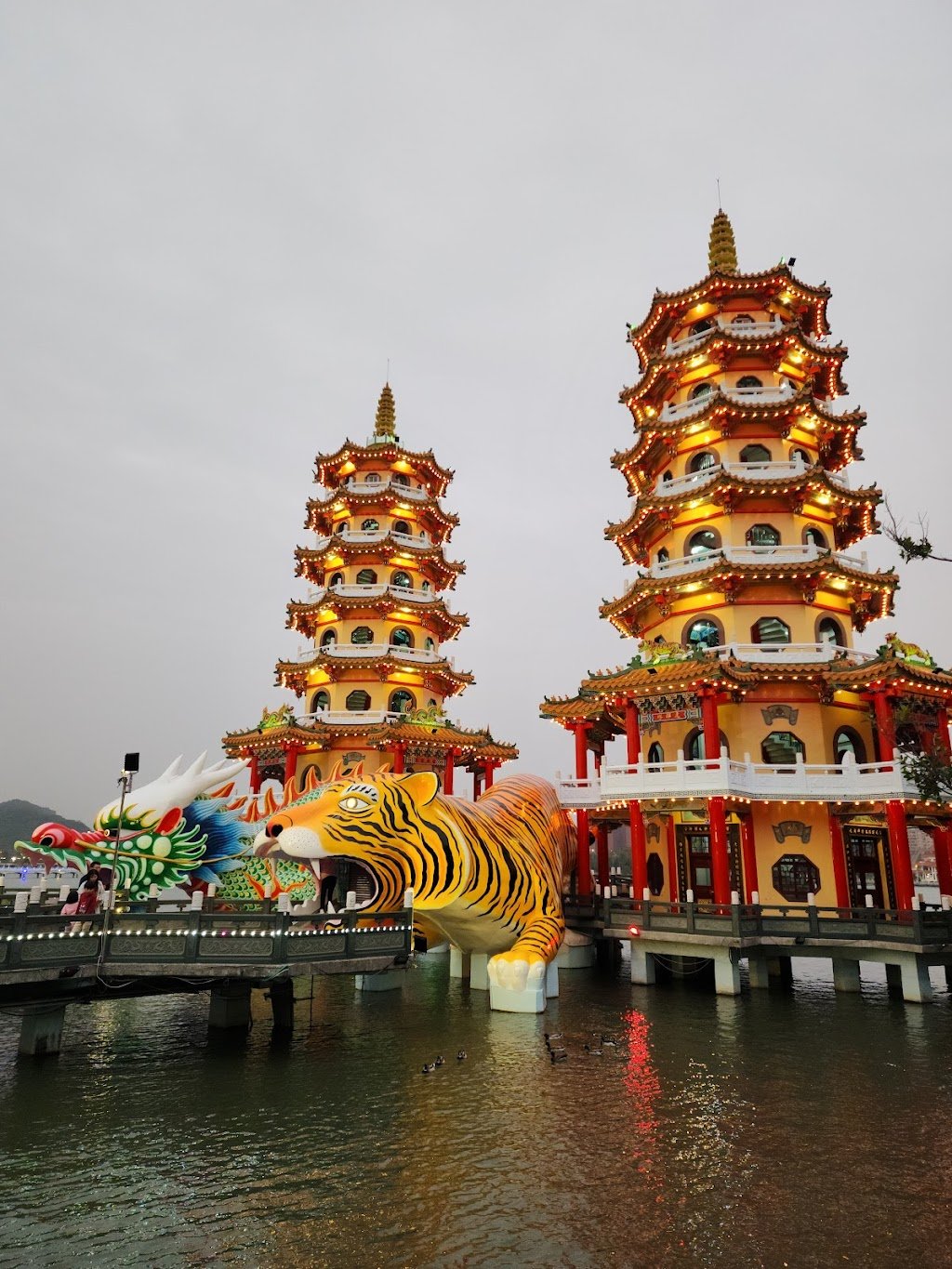 Situated in Zuoying District, Kaohsiung City, the Dragon and Tiger Pagodas are a stunning sight that blends spiritual significance with captivating artistry. This renowned place of worship features colorful, intricately designed dragon and tiger statues that visitors can walk through, symbolizing the transformation of bad luck into good fortune—an experience unique to this site. The peaceful Lotus Pond setting enhances the serene atmosphere, making it ideal for a late afternoon visit. Nearby local food stalls offer delightful snacks, adding to the charm of this cultural landmark. Whether appreciating the architectural details or soaking in the tranquil reflections on the water, the pagodas provide a must-see glimpse into Kaohsiung’s rich heritage and vibrant community life.