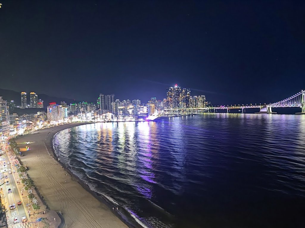 During the day, Gwangalli Beach offers a relaxing environment with soft sand and clean waters. The well-maintained beachside promenade is perfect for leisurely walks and enjoying the peaceful seaside.