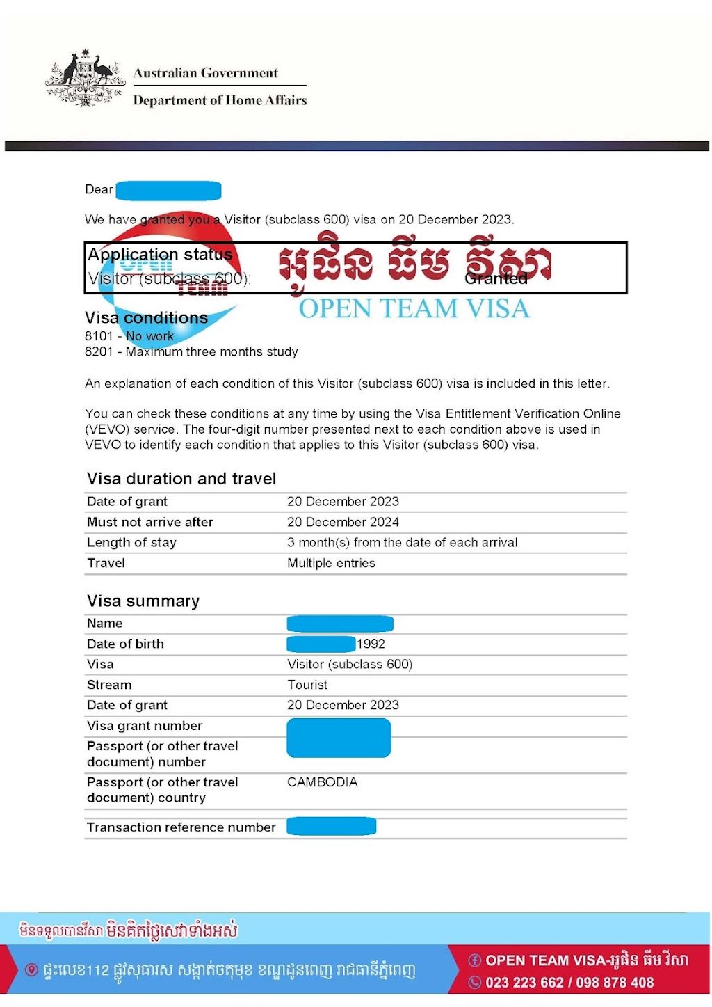 Customers consistently praise Open Team for its excellent translation and visa consultancy services, describing the company as the best option in Phnom Penh for these needs.